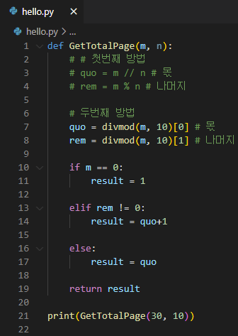게시물의 총 건수와 한 페이지에 보여줄 게시물 수를 입력으로 주었을때 총 페이지수를 출력하는 프로그램