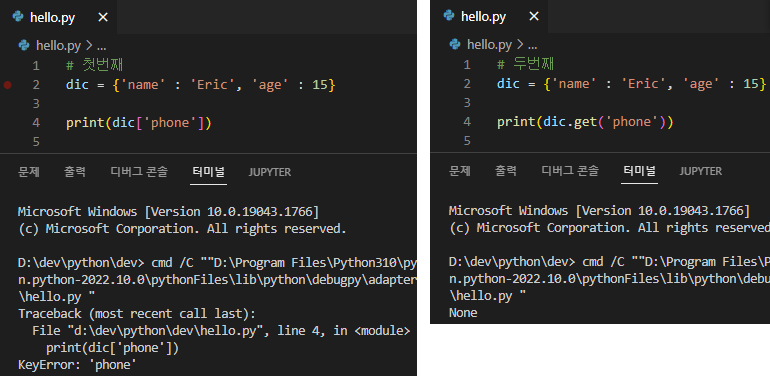 - 첫번째는 KeyError발생