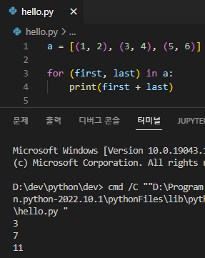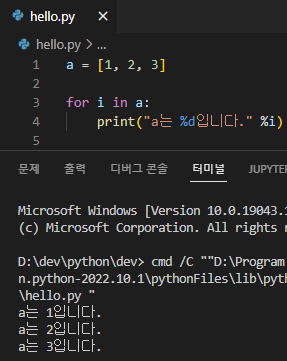 for 변수 in 리스트(또는 튜플, 문자열):