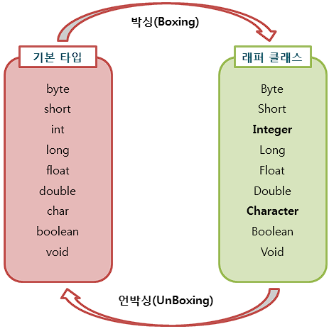 기본 타입에 해당하는 데이터를 객체로 포장해 주는 클래스를 래퍼 클래스(Wrapper class)
