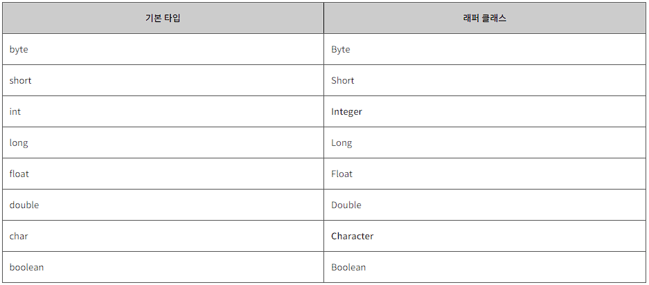 래퍼 클래스는 모두 java.lang 패키지에 포함됨
