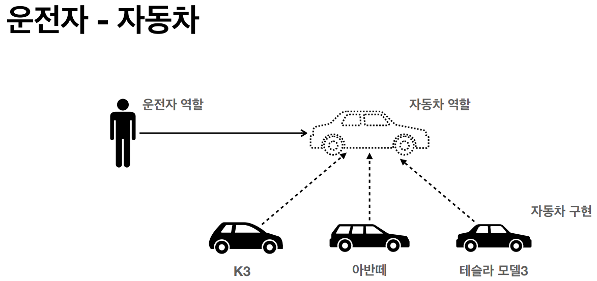 - 예) 운전자가 자동차 역할만 알고 자동차 구현은 몰라도 됨, 배우가 대본에 의존해야지 상대 배우에 의존하면 안 됨