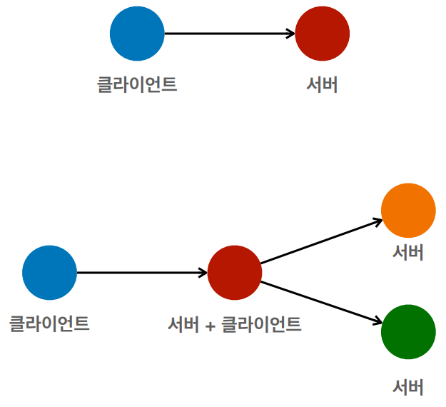 - 클라이언트 : 요청, 서버 : 응답