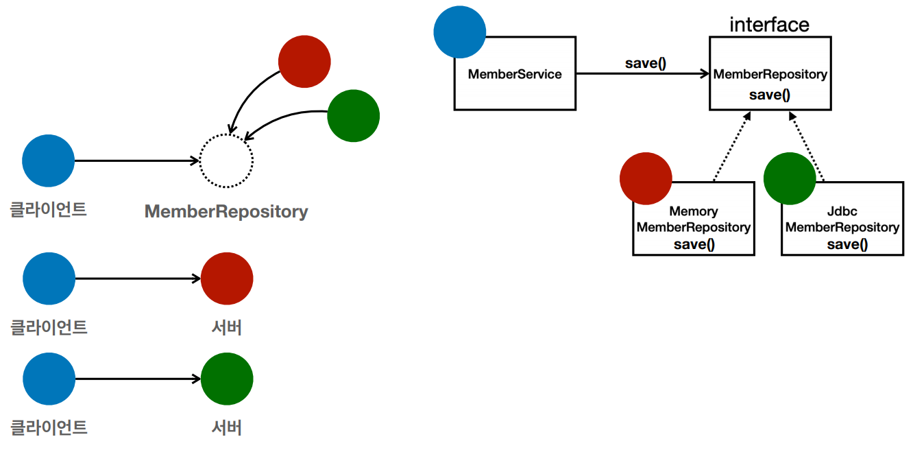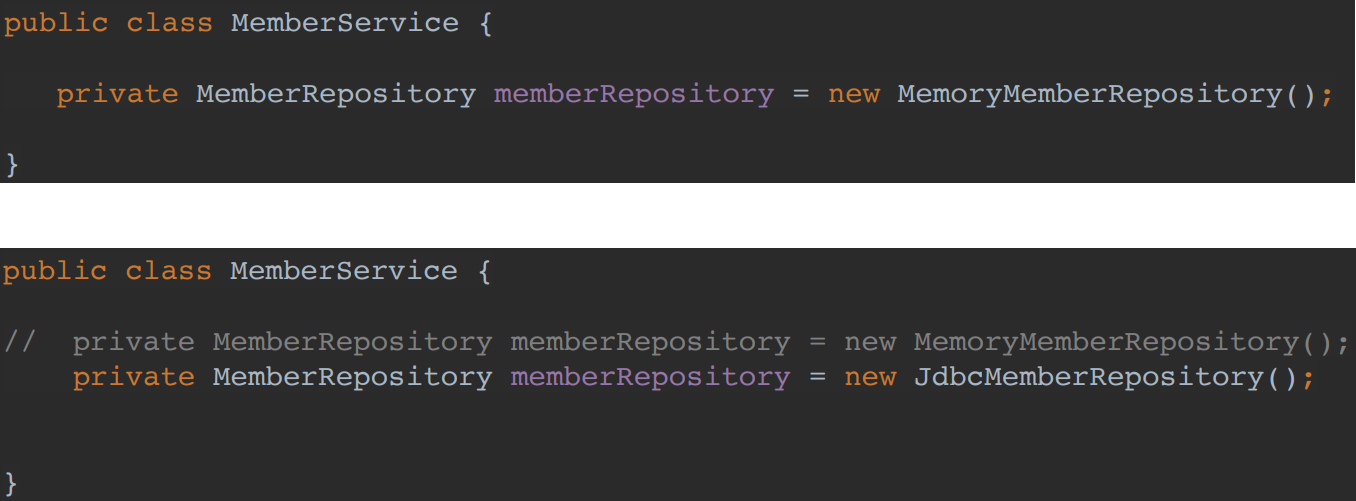 - MemberRepository m = new JdbcMemberRepository(); // 변경 코드