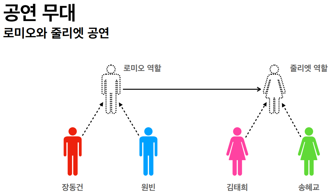 역할에 대한 배우는 대체 가능해야함, 로미오 역할을 맡은 배우는 줄리엣 역할을 누가 하든 상관없음