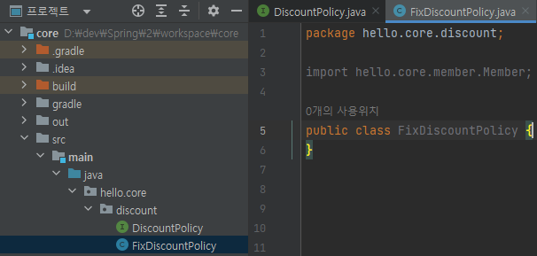 main/java/hello.core/discount/FixDiscountPolicy 생성