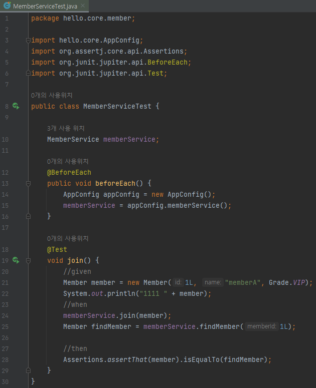 join 메서드의 로직만 개발했는데 실행과 제어권은 junit이라는 테스트 프레임워크가 대신 실행함
