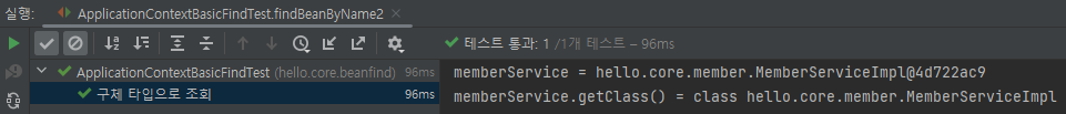 스프링 빈에 등록된 인스턴스 타입을 보고 결정하기 때문에 인터페이스(MemberService)가 아닌 구체화(MemberServiceImpl)로 적어도 됨