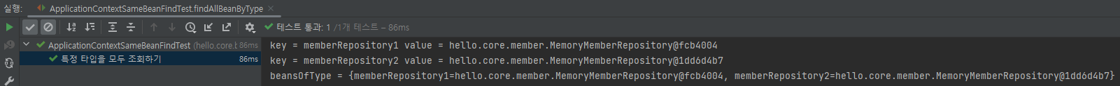 Map<String, MemberRepository> beansOfType = ac.getBeansOfType(MemberRepository.class);