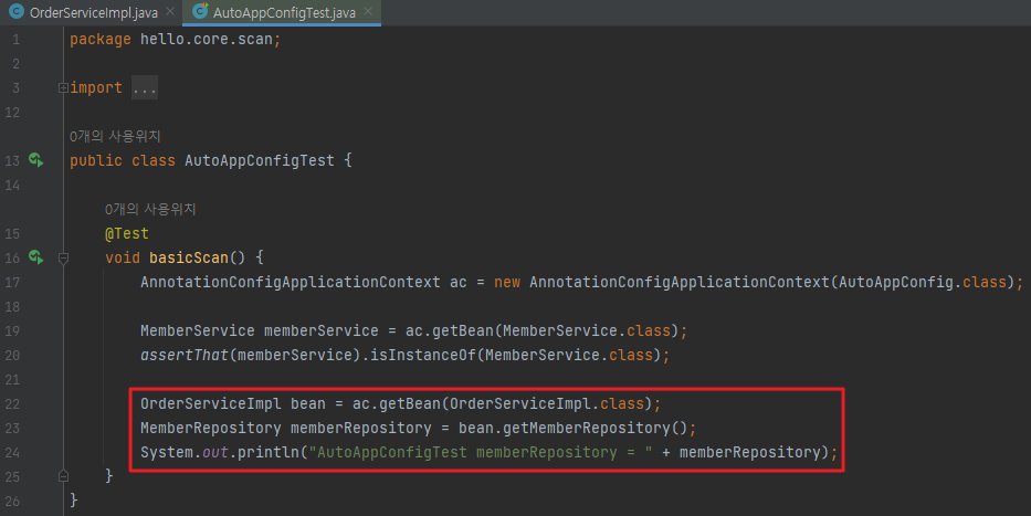 ※ 참고 : 어쩌면 당연한 이야기이지만 의존관계 자동 주입은 스프링 컨테이너가 관리하는 스프링 빈이어야 동작한다. 스프링 빈이 아닌 Member 같은 클래스에서 @Autowired 코드를 적용해도 아무 기능도 동작하지 않는다.