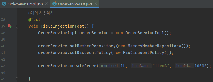 OrderServiceImpl의 memberRepository를 더미 데이터를 넘기는 가짜 memberRepository로 바꾸고 싶다.