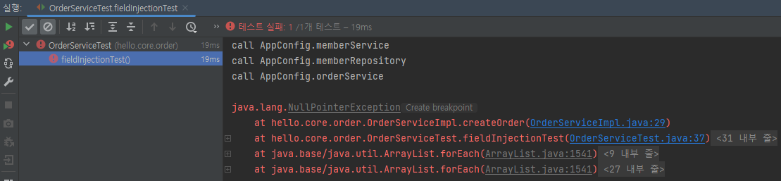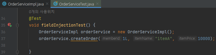 등록한 멤버가 없어서 에러가 발생한거지 orderServiceImpl 자체 에러는 없음