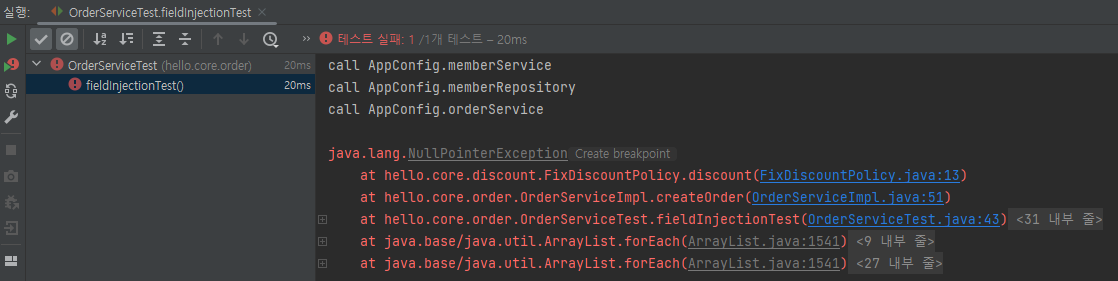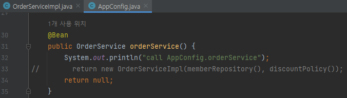 OrderServiceImpl의 생성자가 필요하게끔 되어있어서 return 주석 처리 후 null return