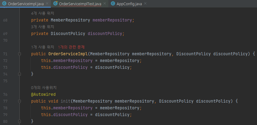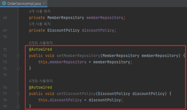 memberRepository, discountPolicy에 값을 세팅해줘야 됨