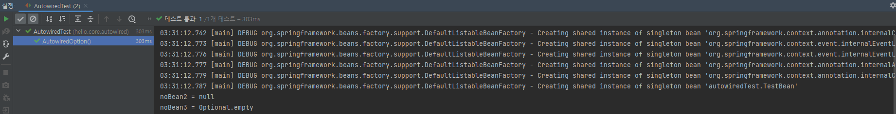 - Optional<> : 자동 주입할 대상이 없으면 Optional.empty가 입력된다.