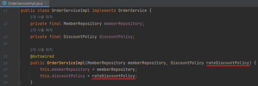 필드 명이 rateDiscountPolicy이므로 정상 주입된다.