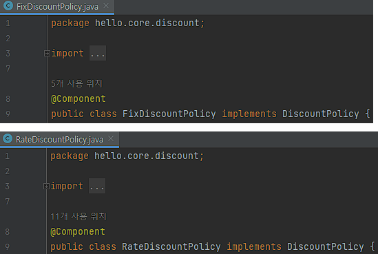 DiscountPolicy의 하위 타입인 FixDiscountPolicy, RateDiscountPolicy 둘 다 스프링 빈으로 선언해 보자.