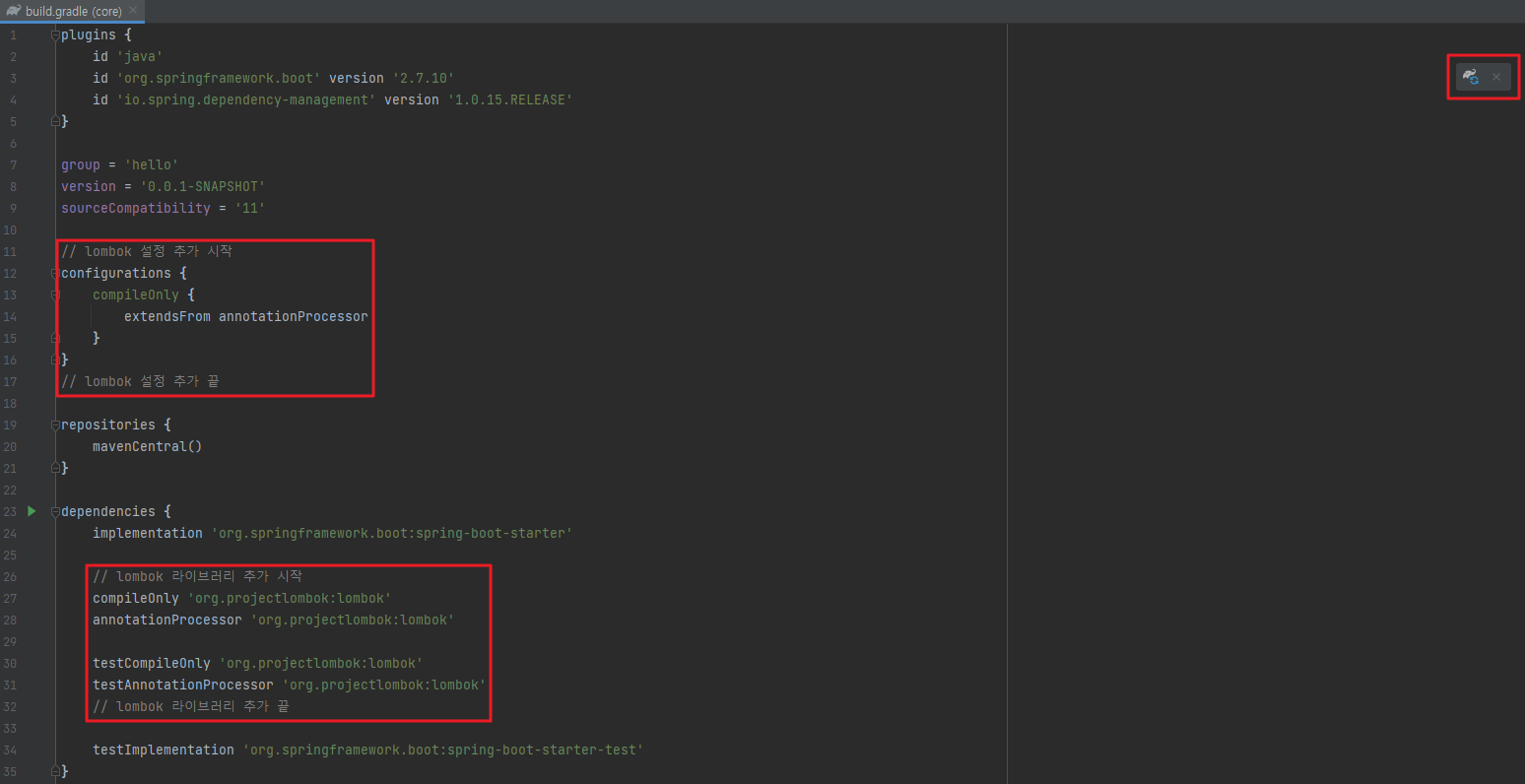 - final이 붙은 필드를 모아서 생성자를 자동으로 만들어줌