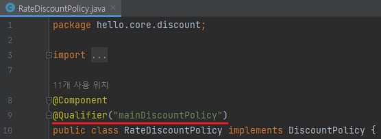 @Qualifier("fixDiscountPolicy"), @Qualifier("mainDiscountPolicy") 제거
