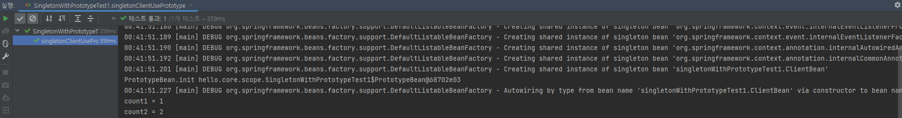- 결과적으로 프로토타입 빈(x01)의 count는 1이 된다.