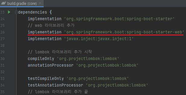 implementation 'org.springframework.boot:spring-boot-starter-web'