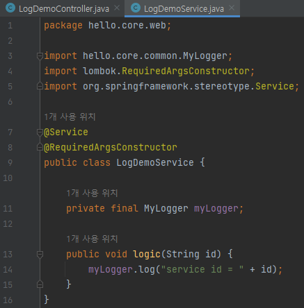 - 비즈니스 로직이 있는 서비스 계층에서도 로그를 출력해 보자.