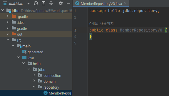 main/java/hello/jdbc/repository/MemberRepository 생성