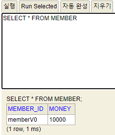 회원의 ID와 해당 회원이 소지한 금액을 표현하는 단순한 클래스이다. 앞서 만들어둔 member 테이블에 데이터를 저장하고 조회할 때 사용한다.