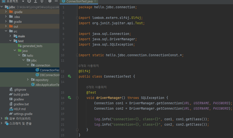 test/java/hello/jdbc/connection/ConnectionTest 생성