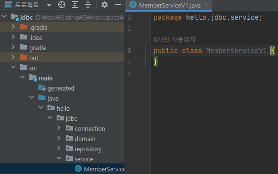 main/java/hello/jdbc/service/MemberServiceV1 생성
