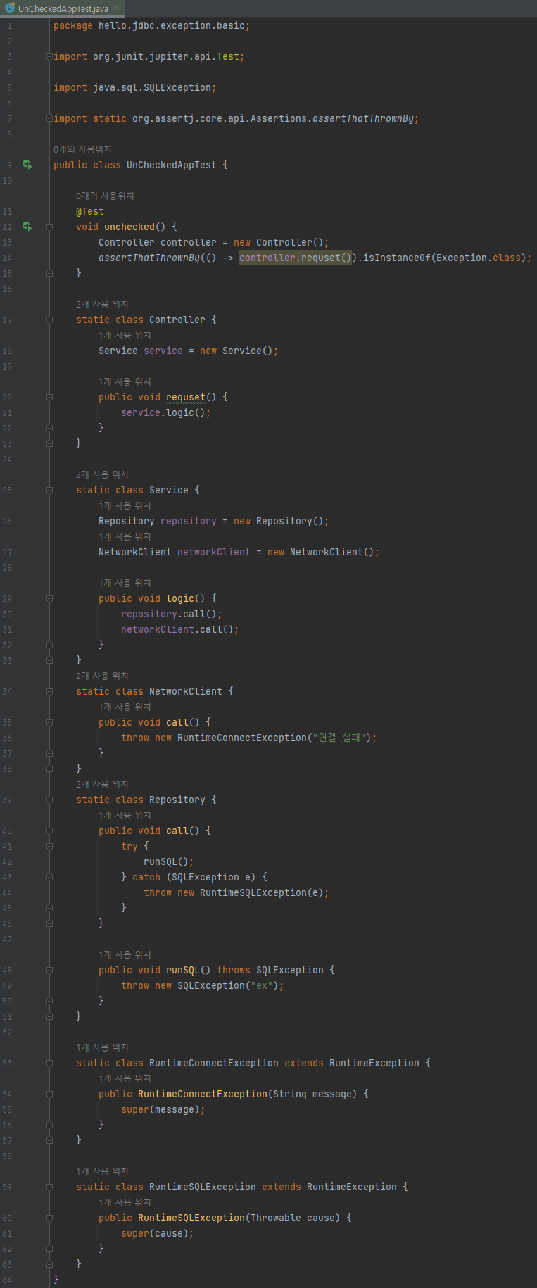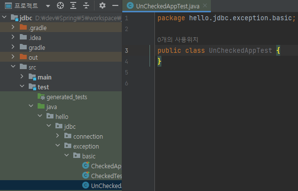 test/java/hello/jdbc/exception/basic/UnCheckedAppTest 생성