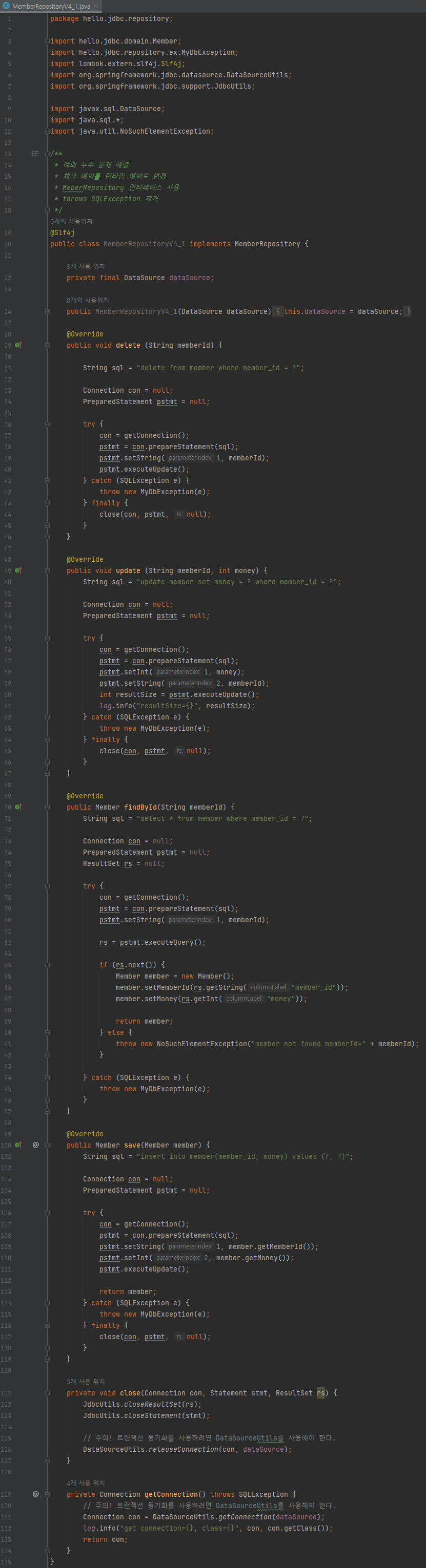 - MemberRepositoryV3을 복사해서 MemberRepositoryV4_1 만들기