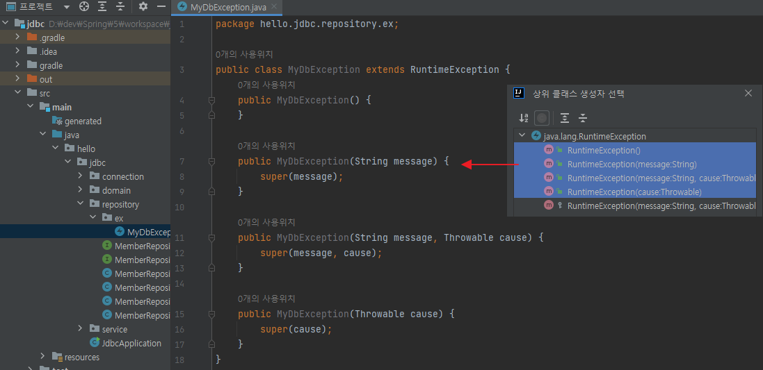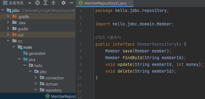 main/java/hello/jdbc/repository/MemberRepositoryEx 생성