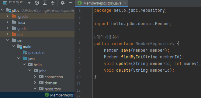 main/java/hello/jdbc/repository/MemberRepository 생성
