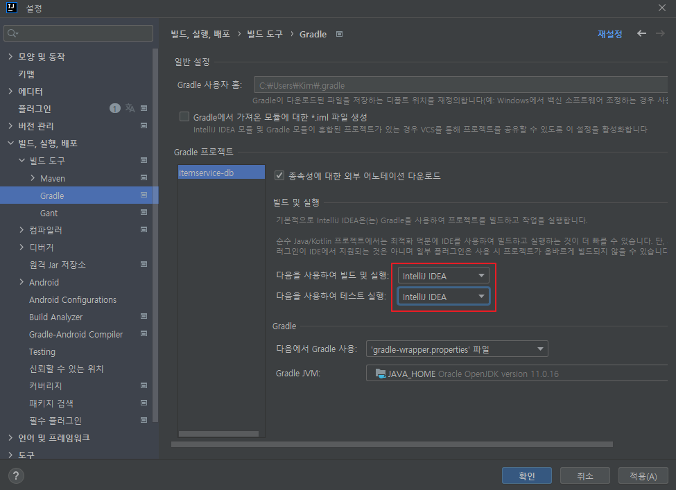 설정 -> Gradle -> Intelij IDEA로 변경