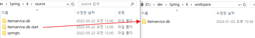 다운로드한 파일 중 "itemservice-db-start"를 원하는 곳으로 이동 후 "itemservice-db"으로 이름변경