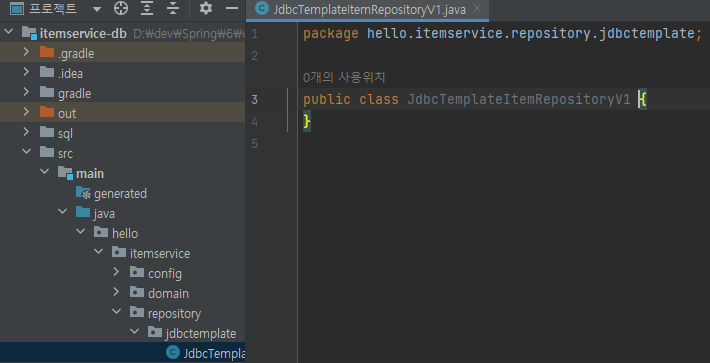main/java/hello/itemservice/repository/jdbctemplate/JdbcTemplateItemRepositoryV1 생성