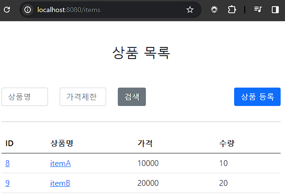 select id, item_name, price, quantity from item상품명(itemName)으로 검색