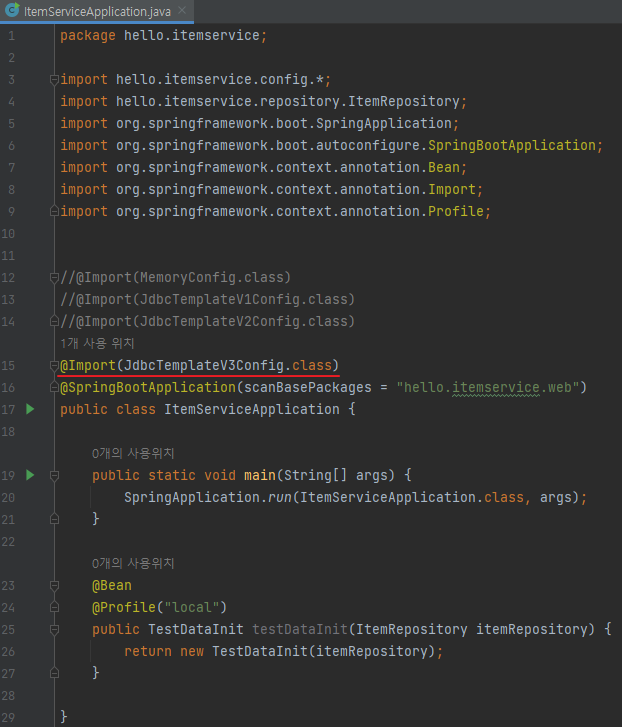- @Import(JdbcTemplateV2Config.class) -> @Import(JdbcTemplateV3Config.class)