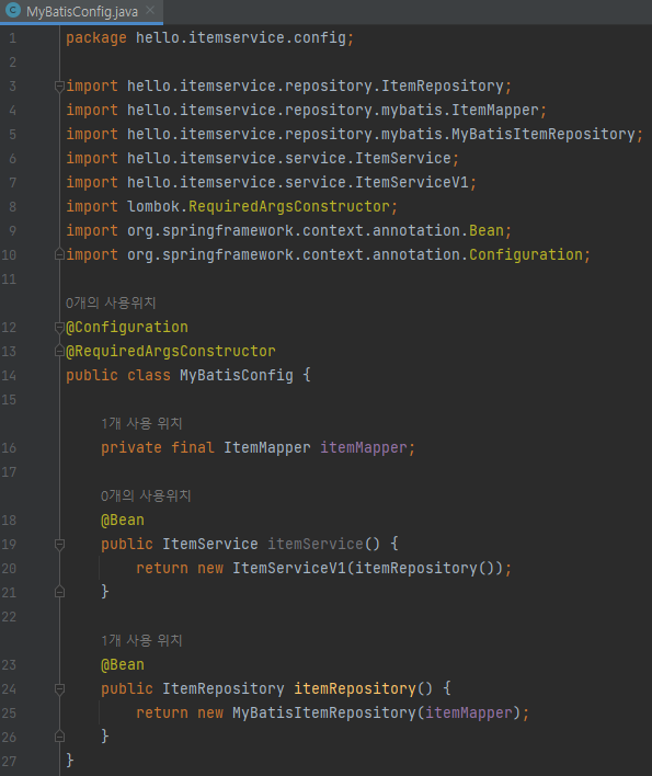 - MyBatisConfig는 ItemMapper를 주입받고, 필요한 의존관계를 만든다.