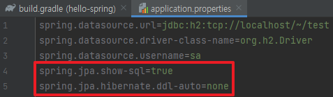 spring.jpa.show-sql=true : jpa가 실행하는 sql을 볼 수 있음