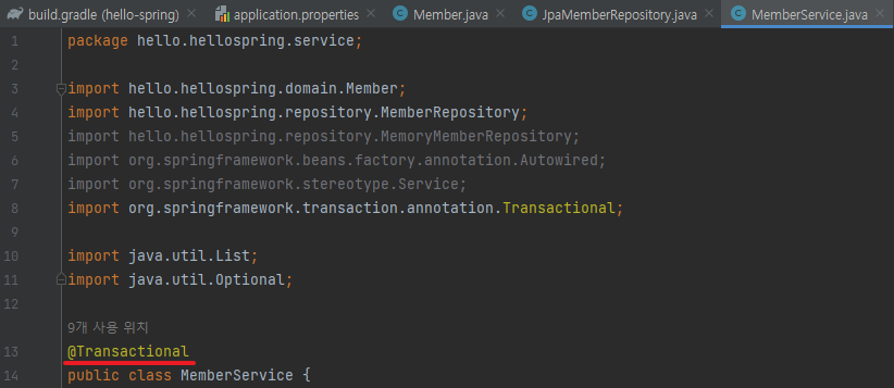 jpa를 사용하려면 @Transactional이 꼭 필요함