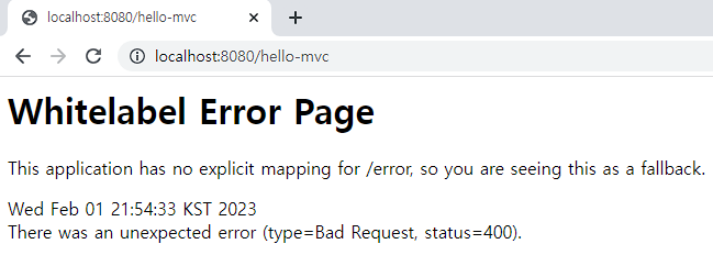 localhost:8080/hello-mvc 입력 시 에러 페이지