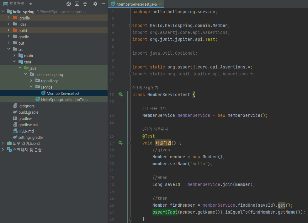 테스트는 메서드를 한글로 사용 가능