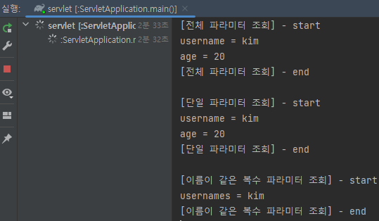 username=hello&username=kim과 같이 파라미터 이름은 하나인데, 값이 중복이면 어떻게 될까?