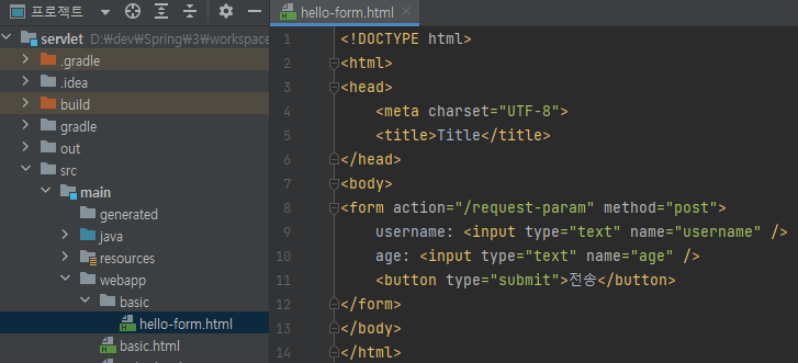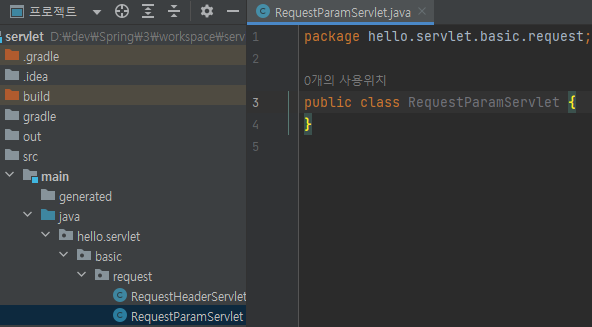 main/java/hello.servlet/basic/request/RequestParamServlet 생성