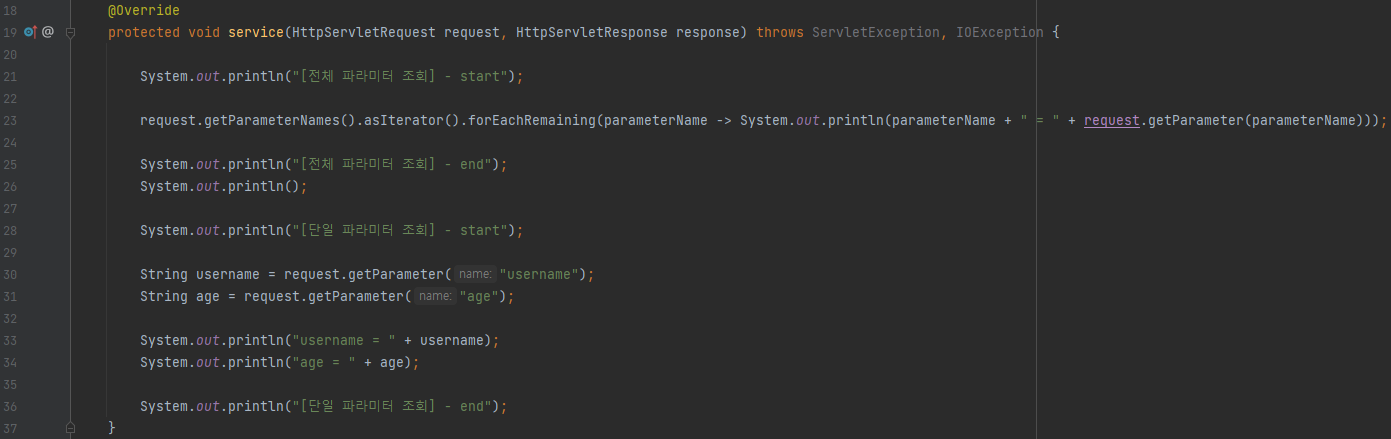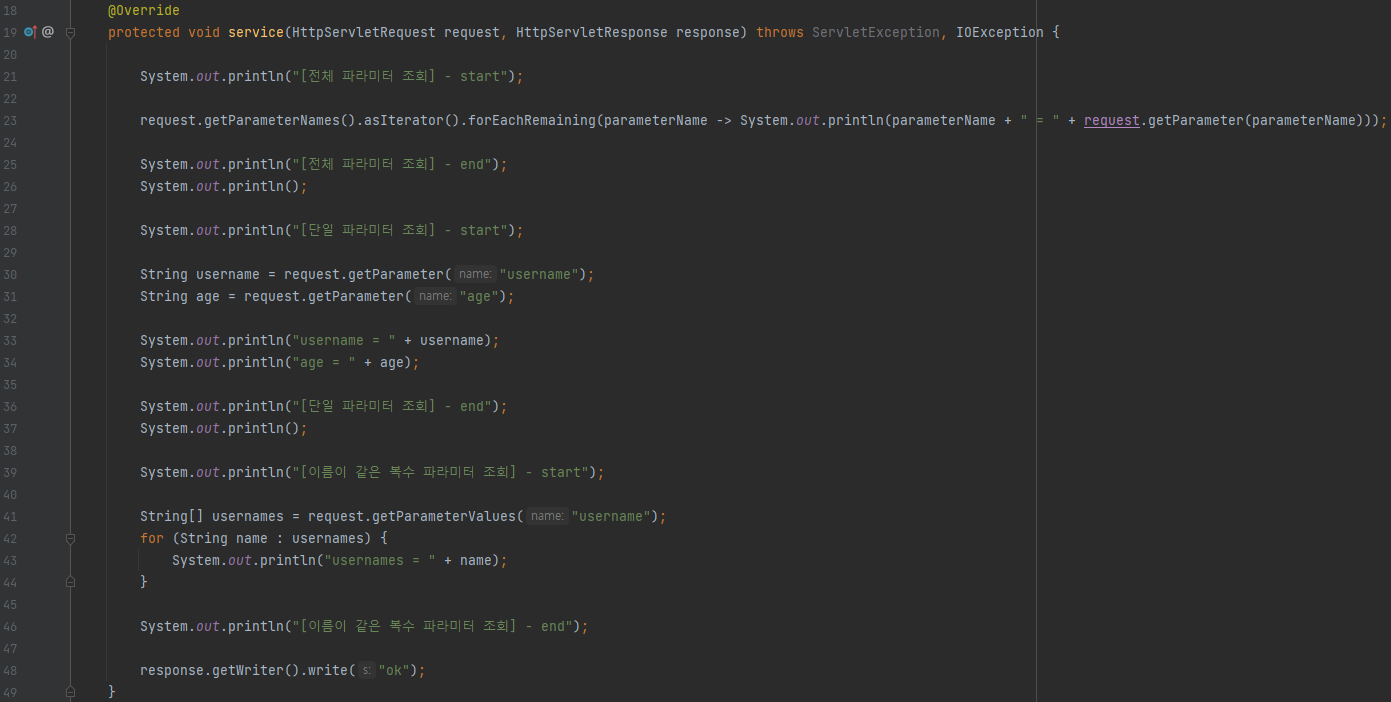 @WebServlet(name = "RequestParamServlet", urlPatterns = "/request-param")