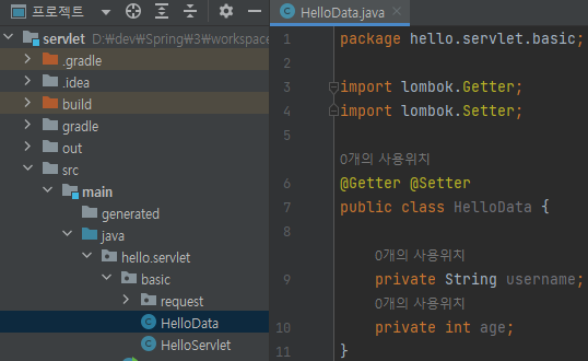 lombok덕분에 getter, setter를 어노테이션으로 처리 가능