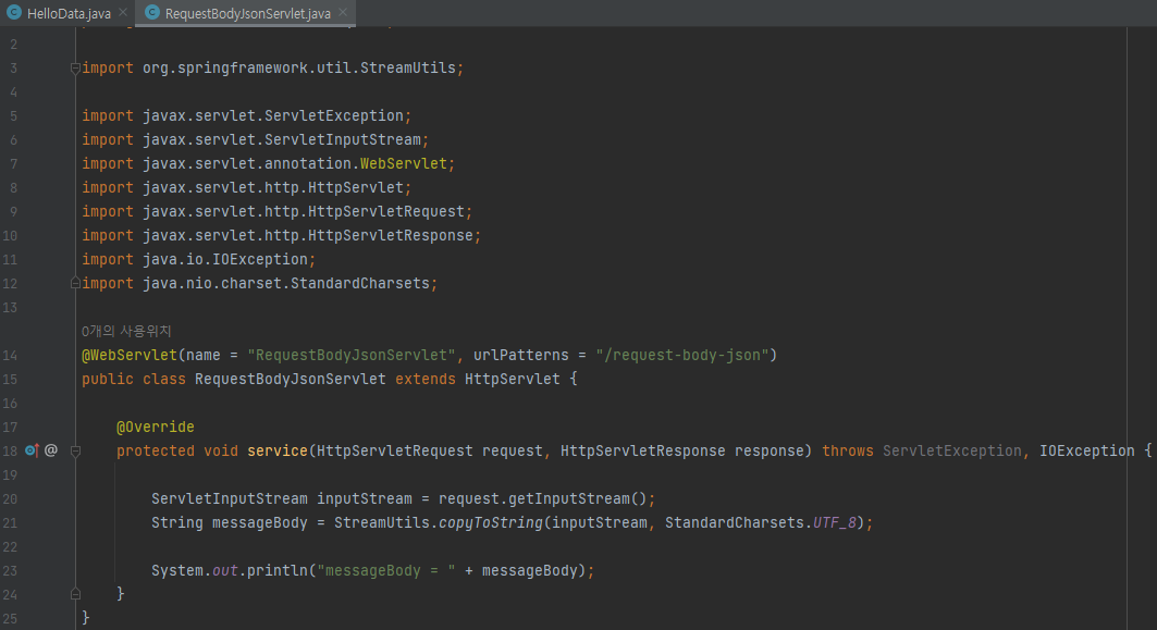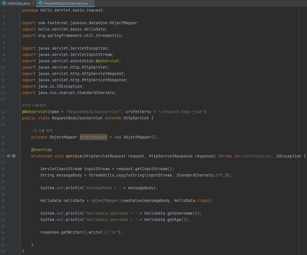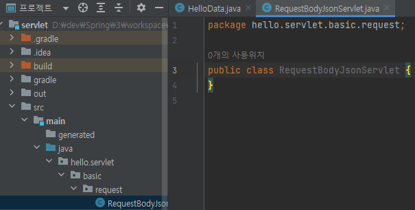 main/java/hello.servlet/basic/request/RequestBodyJsonServlet 생성