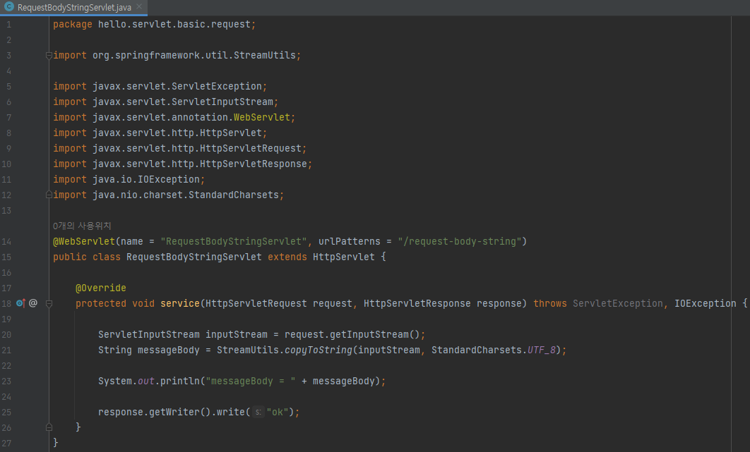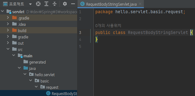main/java/hello.servlet/basic/request/RequestBodyStringServlet 생성